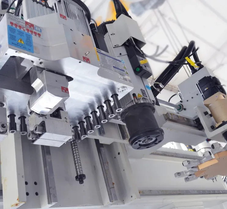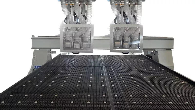 Con mesa de trabajo de doble capa, con lo que el vacío es más fuerte y las piezas quedan firmemente sujetas mientras las cabezas fresadoras realizan su trabajo.